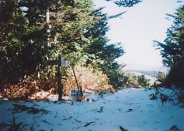 部のフェンスに囲まれた林道を北へ進むとJAライスセンターの脇に登山口があった。この山の装