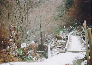 今年は寒波が遅く冷気もあまり気にならない。国道257号から県道440号線に入り、黒谷林道の分岐に向かった。林道脇に車を止め、ゲートから35分ほど歩くと「白草山登山道・山頂2.7km」の指導標。木橋を渡って歩き始めると徐々に急な斜面をジグザグに登って行くようになる。