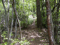 沢沿いの雑木林の間を歩くことおよそ25分、沢が消え谷に出た。このあたりから森の風景も変わ