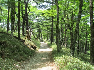 ここまで来ると登山口まではほんの30分。山頂からの帰りのコースも良く整備された登山道で、下って行く途中岩から湧き出ている水の冷たいこと。駐車場まで戻ってきたらバスの出発時間にはまだ大分時間があってヤレヤレ。大台ヶ原物産店に入り名物のとち餅を購入、これを土産とした。次回は大杉峡登山口から入り、「桃の木やまの家」に泊まってみたい。 |
