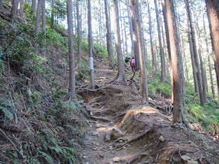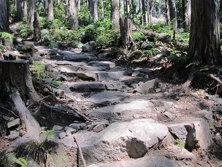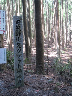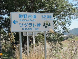 | 標高357mのツヅラト峠は、かって「伊勢の国」と「紀伊の国」の境だった峠で、昭和初期まで生活道として利用されていた。紀伊側には約300mにわたって石畳道が残ったいる。熊野詣で開けた登山道はよく整備され、峠からの展望も素晴らしい。 |