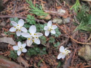およそ3時間の軽い一日コースだ。標高差は350mですんでしまう。しばらく平坦な道を進み、ツヅラト峠登り口まで来ると、ここまでの歩きで程よく体も温まってきた。この時期、この峠への装備は軽装で充分だが、今日はフリースも用意した。山道へ入って行くと途中初めて「バイカオウレン」を見つけた。