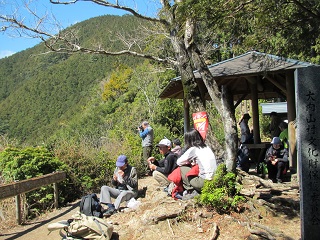 カメラのシャッターを押しながら上がっていくのだが、傾斜はかなりキツイ。一汗かいてしまったが、峠までは30分もかければ着いてしまう。ツヅラト峠の山頂部は思ったより狭いが熊野灘一帯の眺めは実に素晴らしい。東屋があって先客たちがくつろいでいた。 |