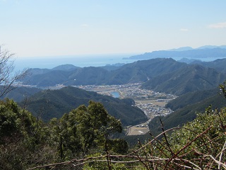 ◆ 腹ごしらえをして元気が出たところで、一段上の展望台に上がってみると入り組んだ谷の向こうに熊野灘が見え、はるばるやって来た甲斐があったというものだ。気分のいい所でしばらく景色を楽しんで下山にかかる。
